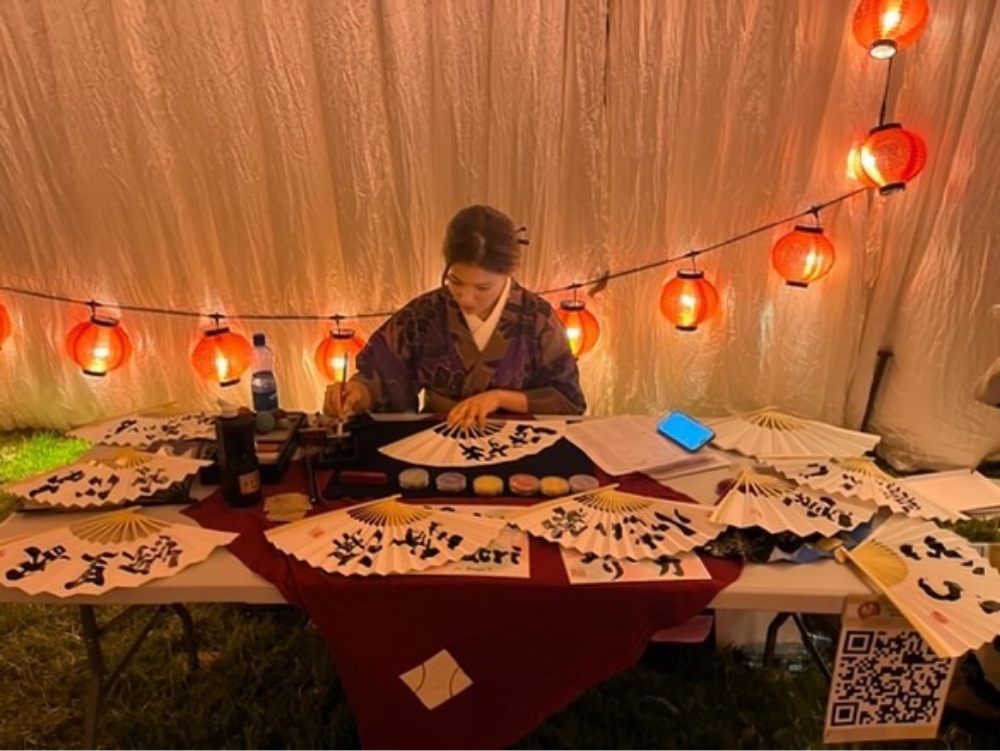 I spent seven hours straight writing things out during the festival, and while I was scribbling away, the world around me was buzzing. The dancers practiced the same routine over and over, determined to deliver the best performance possible. The yukata-fitting area never stopped—yet the team there stayed cheerful and energetic. And one young woman, who had no idea what our specific job even was, jumped right in and figured out how to help me so I never had to put down my pen. It was the perfect assist.